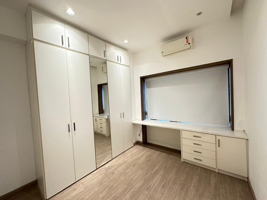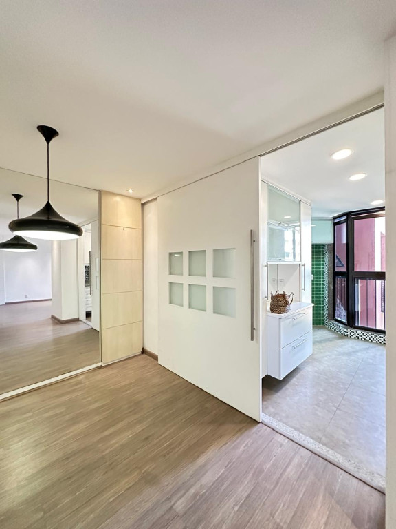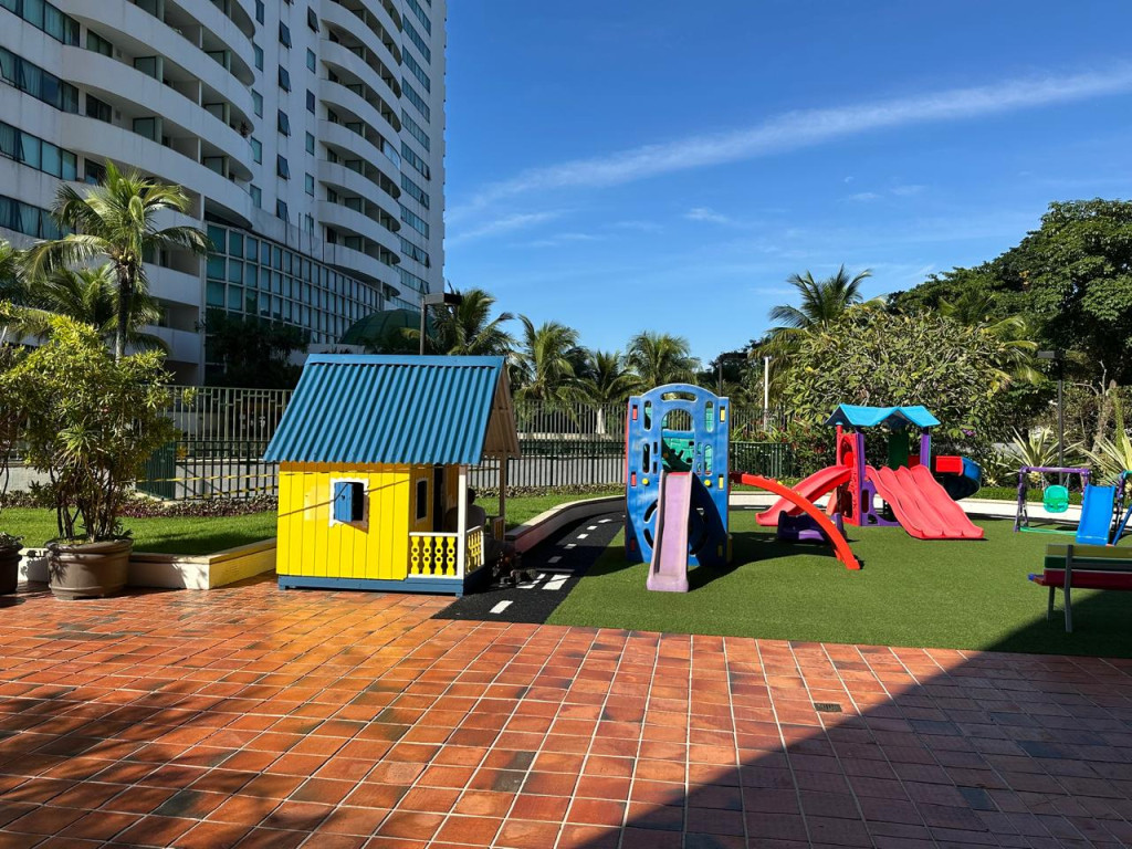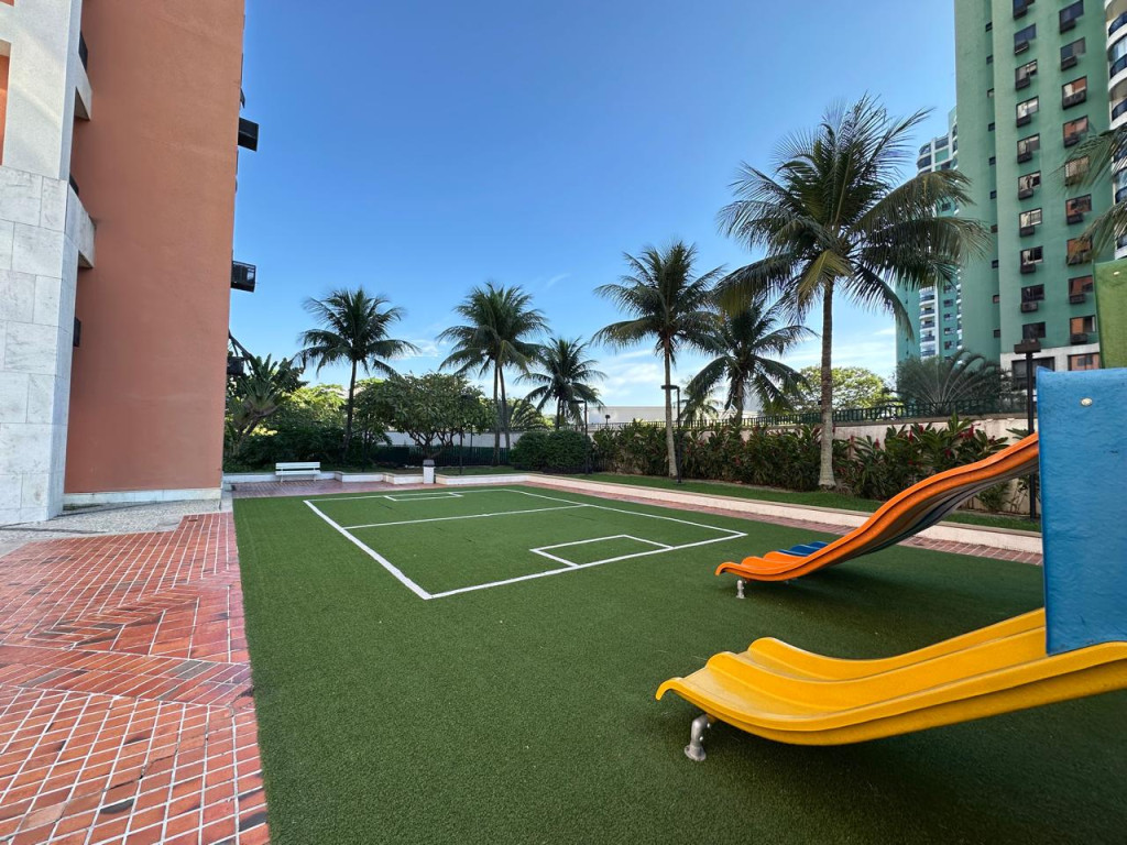 3 quartos, sendo 1 suíte, todos equipados com ar-condicionado split e armários planejados, proporcionando praticidade e conforto.